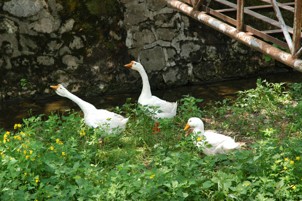ガチョウとアヒルたちはみうごきできぬほどの狭い檻の中に閉じ込められ、
