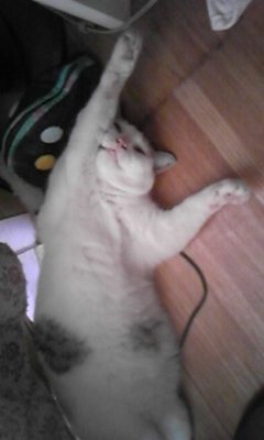 日だまりの布団で嬢がフワフワ、フガフガと眠っておりますよ。